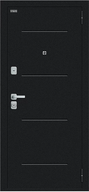 Надежная входная Дверь Браво Техно/BChrome Букле черное/Wenge Melinga премиум класса по цене 35 260 руб. Большая толщина стали защитит от проникновения в ваш дом, квартиру или коттедж. Используется очень качественная фурнитура: замки, цилиндры, ручки, защелки. Покрытие и отделка двери изготовлено под внимательным контролем производителя. Дверь имеет долгий срок службы и гарантию.
